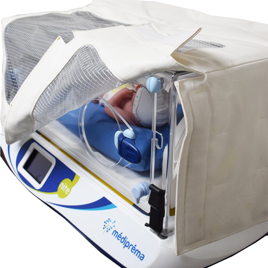 The insulated cover provides additional comfort for the newborn in the Nite incubator, and reassures caregivers who are concerned about temperature variations during transport.