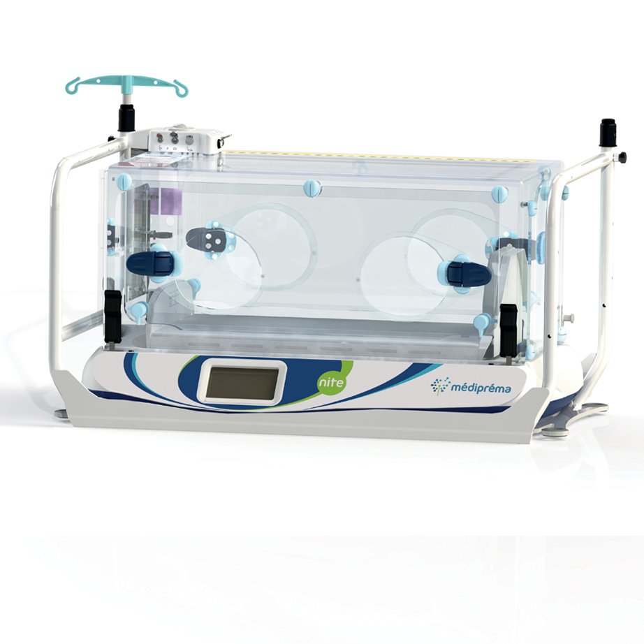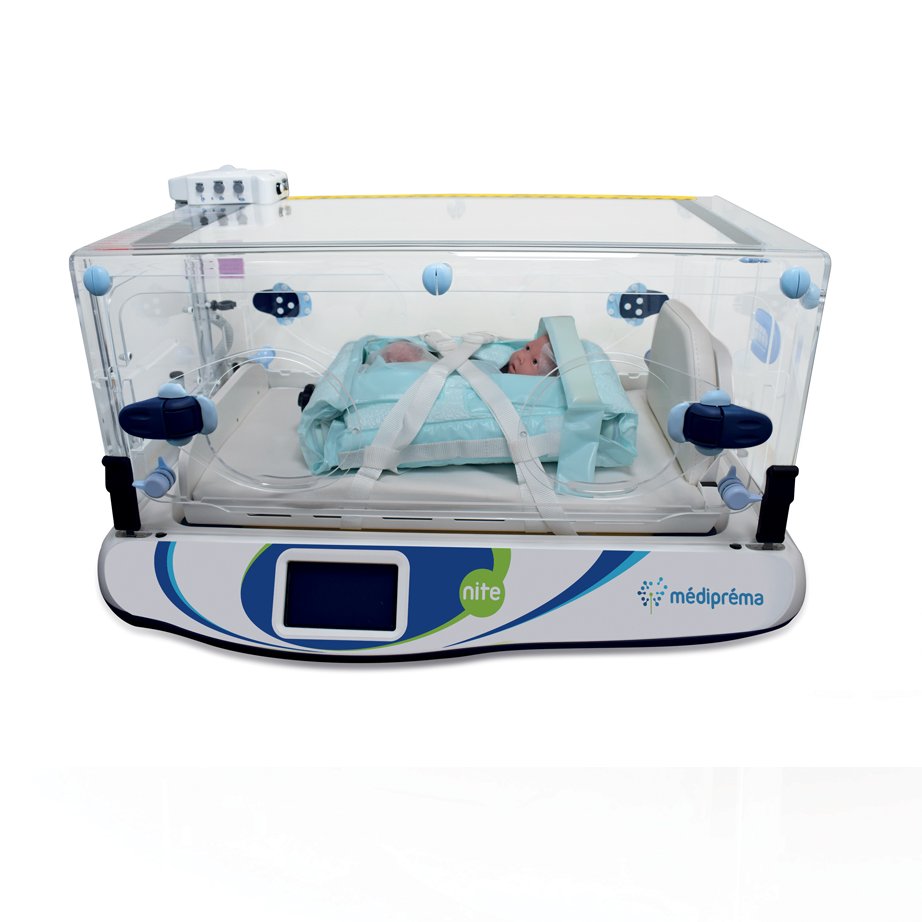 The Nite incubator by médipréma has been designed to improve the conditions of transport of newborns. The incubator’s sleeping surface is placed on silicone feet to limit vibrations related to transport. The sleeping surface is reversible (head, feet) to adapt the position of the child to the equipment on board and the position of the caregiver. The interior has been designed to limit noise pollution from the fan as much as possible for more peace of mind for the newborn.